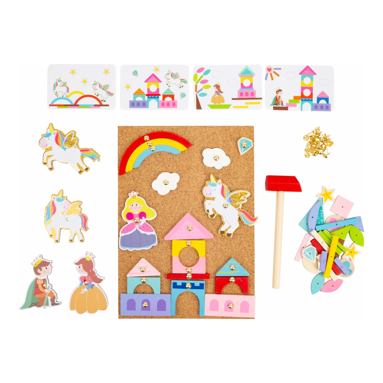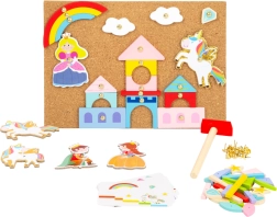 Ienirstiet maģiskā radošās izklaides pasaulē ar Sišanas spēli Vienradzis. Šī spēle ļauj bērniem veidot dažādas ainiņas un stāstus, izmantojot komplektā iekļauto āmuriņu un krāsainas koka formas. Komplektā ir arī paraugi, kas iedvesmos bērnus radīt pasakainus attēlus.