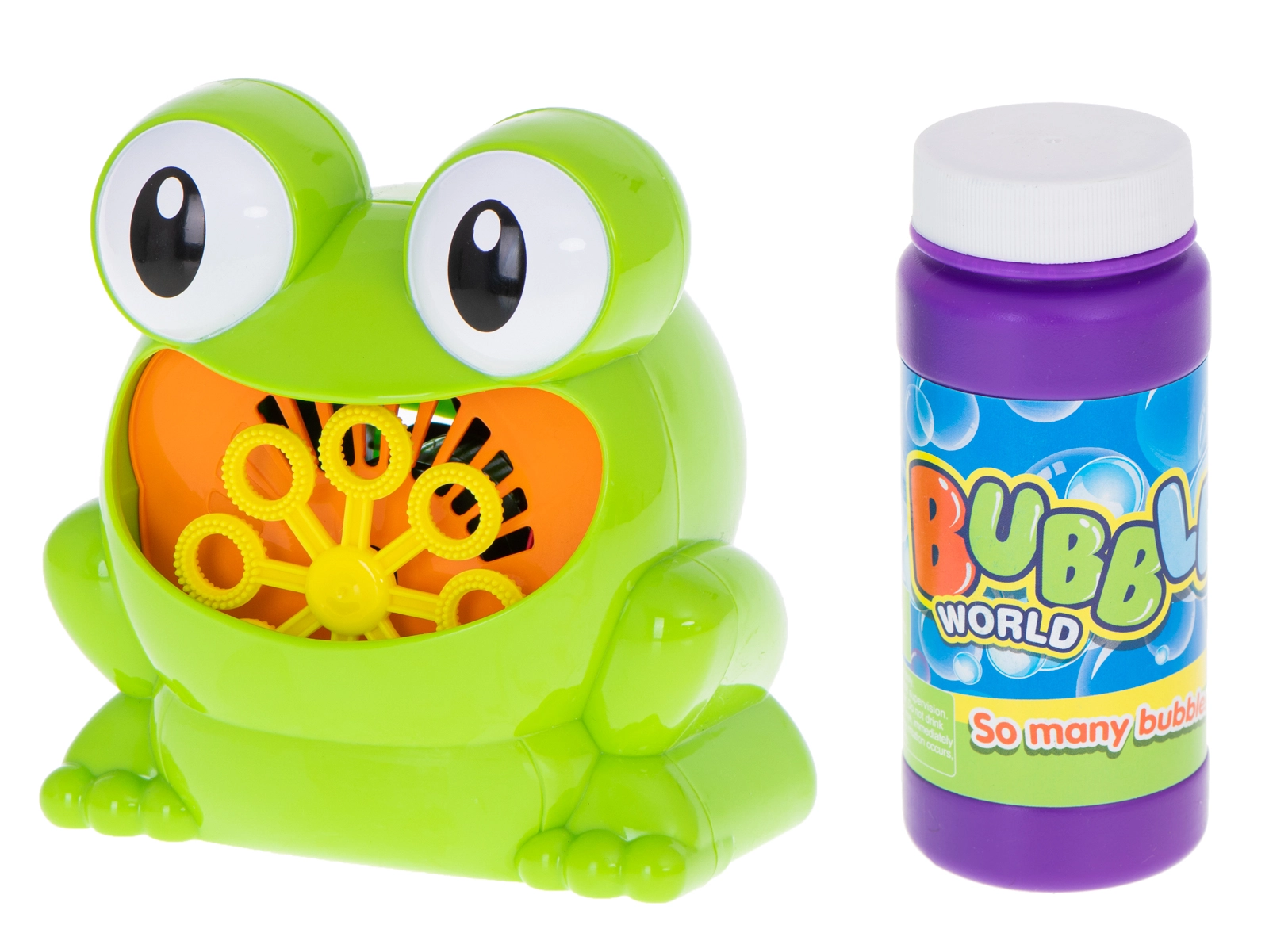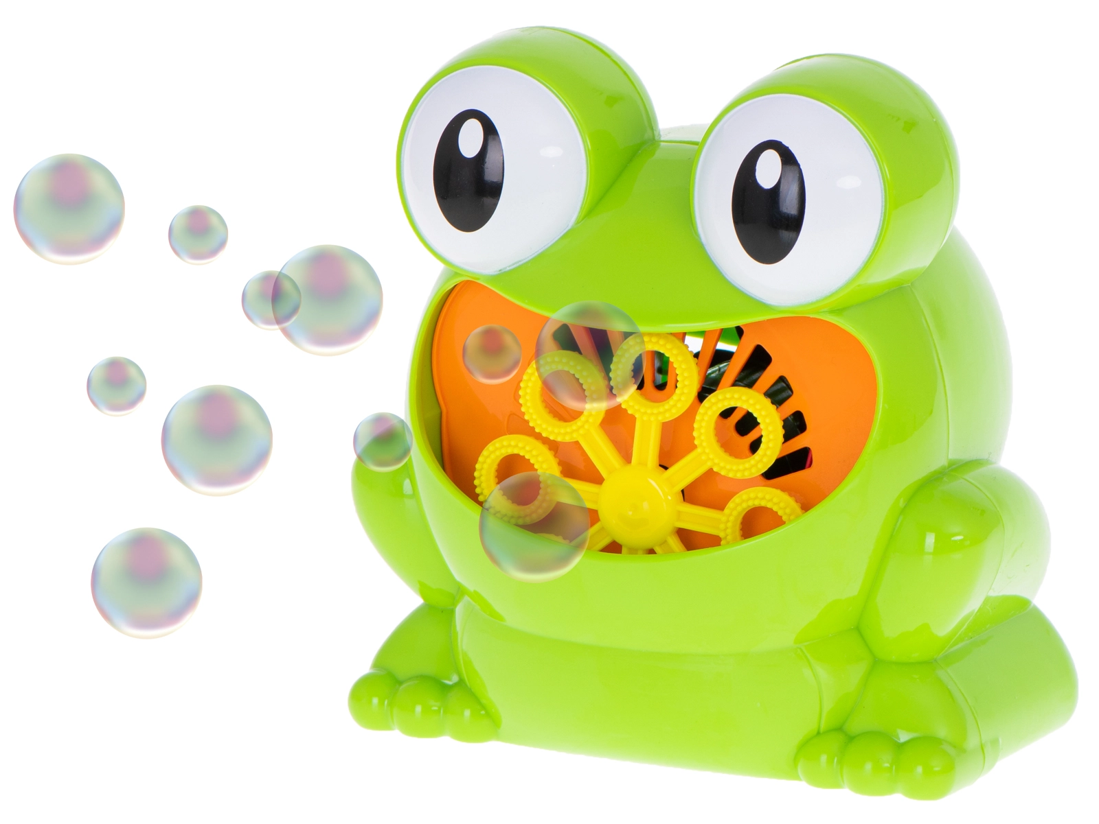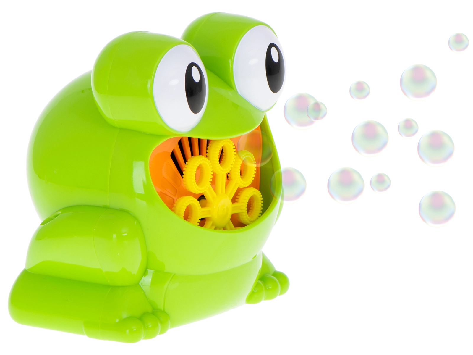Pēc šķīduma ieliešanas un pogas nospiešanas varde nekavējoties izpūš krāsainu burbulīšu straumi – lieliski ikdienas rotaļām un svinībām.