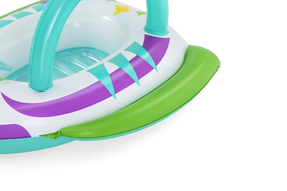 Pateicoties stabilai konstrukcijai no izturīga PVC un ērtajiem rokturiem, bērni pieaugušo uzraudzībā var droši peldēt seklā ūdenī. Stūre ar tauri piešķir interaktīvu izklaidi un attīsta motoriku. Košā “kosmiskā” grafika piesaista uzmanību un veicina iztēli ūdens rotaļās.