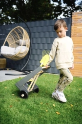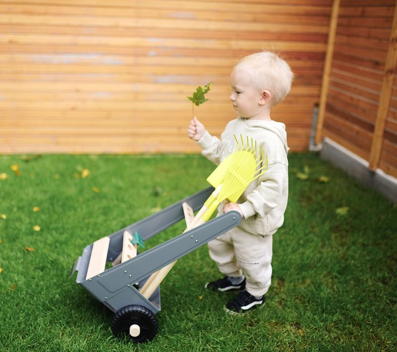 Pateicoties izturīgiem riteņiem un stabilai konstrukcijai, ratiņus ir viegli vilkt un stumt pa dārzu, kas bērniem atvieglo dārzkopības darbus.
