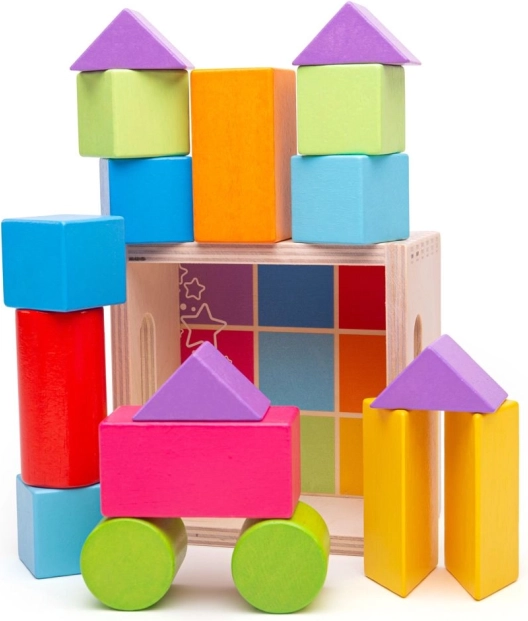 Atklājiet koka formu pasauli ar skaisti krāsainiem klucīšiem no Bigjigs Toys. Šajā komplektā ir 17 gabali, un tas ir izstrādāts, lai attīstītu roku-acu koordināciju un telpisko iztēli bērniem. Izgatavots no augstas kvalitātes, atbildīgi iegūtiem materiāliem, šis produkts atbilst stingrākajiem Eiropas drošības standartiem.