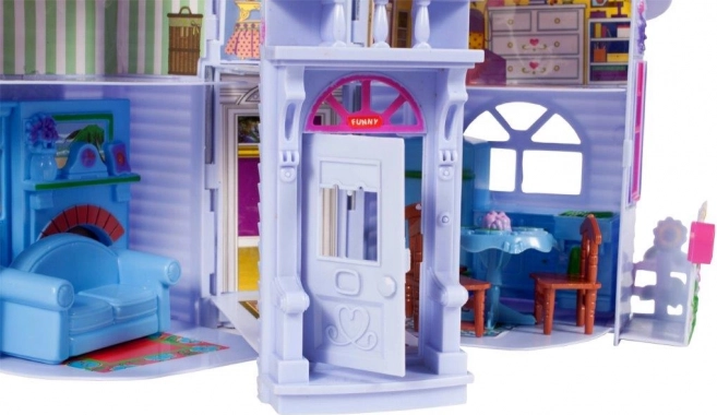 Šī krāsainā saliekamā leļļu mājiņa ir ideāla vieta fantāzijas pilnai spēlei jūsu bērnam. Ar vairākām istabām un dažādiem piederumiem tā piedāvā stundām ilgu izklaidi un veicina radošumu un stāstu veidošanu, pateicoties ērtai pārnēsāšanai ar praktisku rokturi.