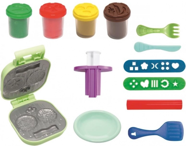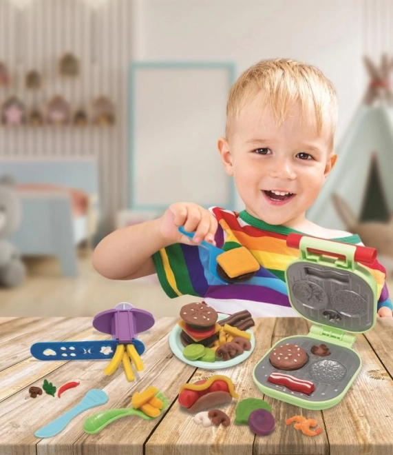 Atklājiet radošās veidošanas pasauli ar MODELO Jautrā modelīna Hamburgeru komplektu. Šajā komplektā ir viss nepieciešamais, lai izgatavotu reālistiski izskatīgus modelīna hamburgerus: