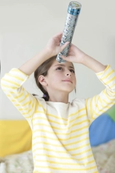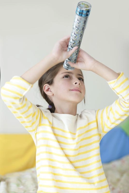 Kompakto un vieglo kaleidoskopu bērni var ņemt līdzi jebkur. Katrs apgaismojums un vide izbur jaunas, aizraujošas figūras.