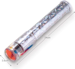 Iepakojumā atradīsiet visu, kas nepieciešams funkcionāla apmēram 25 cm gara kaleidoskopa izgatavošanai. Pateicoties maināmajiem pildījumiem un dekorācijām, bērni var veidot unikālus rakstus no krellītēm, fliteriem un krāsainiem diskiem. Lieliski attīsta sīko pirkstu motoriku, iztēli un pamata optiskos principus.