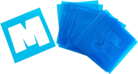 Speciālie burtu šabloni ļauj vienkārši veidot daudzveidīgus rakstus un motīvus. Ideāli mācībām un izklaidei.