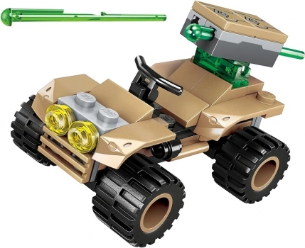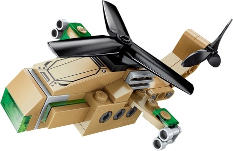 Izmantojiet komponentes, lai saliktu dažādus modeļus, piemēram, kvadriciklu, kaujas lidmašīnu vai helikopteru, kurus varat brīvi kombinēt.