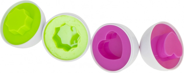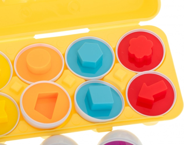 Komplektā ir 12 olas ar dažādām formām un krāsām, kas paslēptas zem čaumalas. Spēles uzdevums ir piesaistīt olu pusītes pēc formas un krāsas tā, lai izveidotos veselums. Tā ir ne tikai izklaidējoša, bet arī izglītojoša nodarbe, kas stiprina loģisko domāšanu. Olas ir vieglas un ērti pārnēsājamas, tāpēc tās ir ideāli piemērotas bērnu izklaidei garu ceļojumu laikā vai gaidot vizīti pie ārsta.