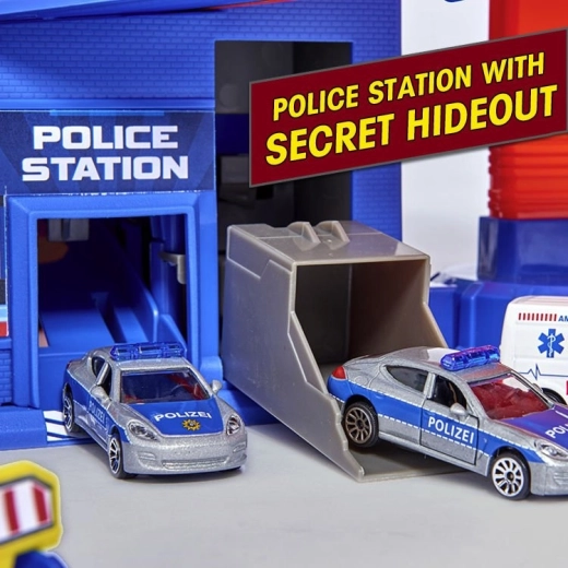 Komplektā ir tematiskās zonas, piemēram, policijas stacija ar slēptuvi, ugunsdzēsēju posteņi, degvielas uzpildes stacija un mazgātava. Pateicoties plašajai stāvvietai līdz pat 35 auto un pārdomātajam izvietojumam, komplekts ir ideāli piemērots brāļiem, māsām un draugiem. Lieliska dāvana, kas veicina sīko motoriku, iztēli un sadarbības spēli.