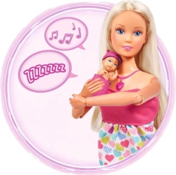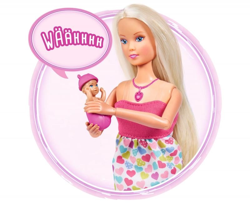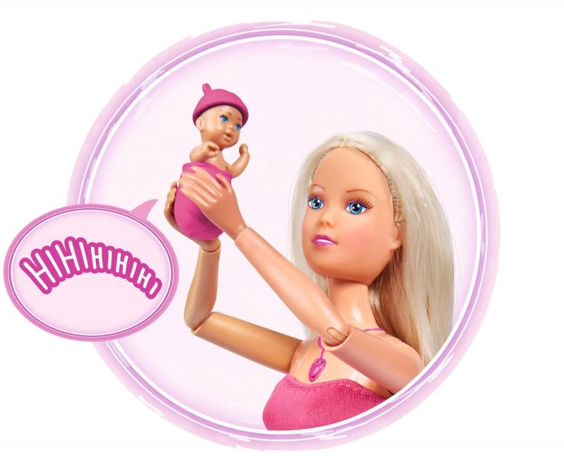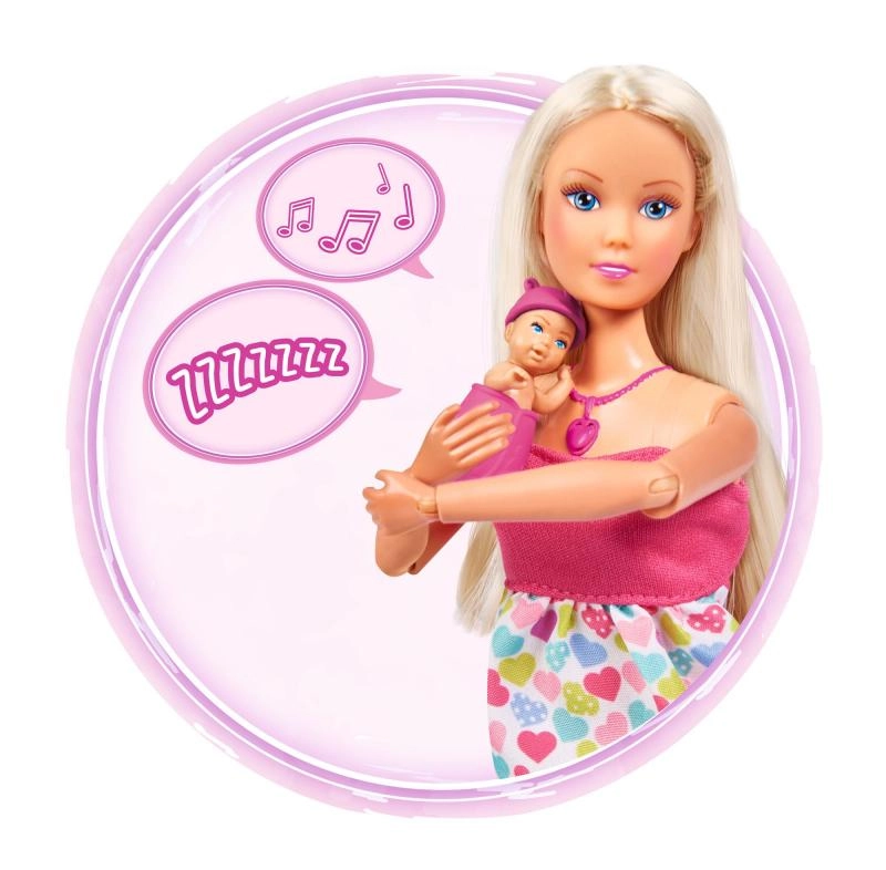 Steffi Love lelle bērniem atklāj maigus stāstus par gaidību laiku un pirmo aprūpi par mazuli. Intuitīva vadība ar sirsniņas kaklarotu atskaņo dažādas skaņas – no sirdspukstiem līdz raudām un nomierinošai šūpuļdziesmai. Vēderiņu var aizvērt ar integrētas vāciņa palīdzību, lai rotaļa dabiski pārietu no gaidību posma uz jaundzimušā aprūpi.