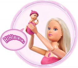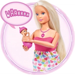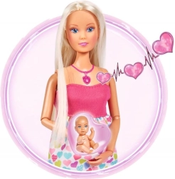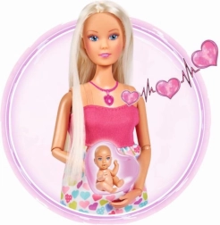 Atklājiet aprūpes rotaļu burvību ar lelli Steffi Love, kura ir grūtniece un piedāvā reālistiskus skaņas efektus. Nospiežot sirsniņas kaklarotu, dzirdēsiet mazuļa sirdspukstus, jaundzimušā raudas un nomierinošu melodiju. Komplektā ir nēsātājs un aprūpes piederumi mazulim, kā arī try-me funkcija tūlītējai izmēģināšanai.