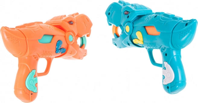 Divas stilīgas dinozauru formas pistoles ļauj droši un efektīvi šaut ar mīkstām putu bumbiņām. Ideāli spēlēm divatā un sacensībām.