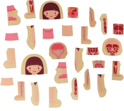 Bērns saliek tēlu, sākot ar skeletu, turpinot ar orgāniem un muskuļiem, līdz ķermenim un apģērbam. Uzskatāmie slāņi veicina cilvēka ķermeņa izpratni rotaļīgā veidā.