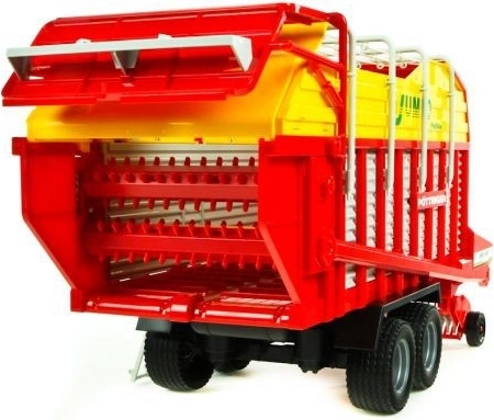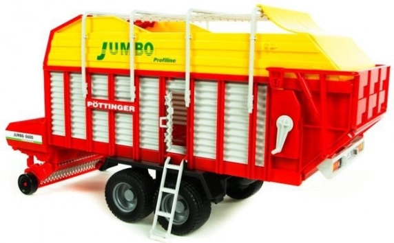 Ienesiet sētā īstu ražas noskaņu. BRUDER Pöttinger Jumbo 6600 savācējpiekabe izceļas ar izturīgu konstrukciju, raksturīgo sarkani dzelteno dizainu un precīzām detaļām, kas uzticami atveido oriģinālo lauksaimniecības tehniku. Bērni var viegli atvērt sānu malas un aizmugures vārtus, nolaist kāpnes, bet noņemamie jumta rokturi ļauj ieskatīties piekabes iekšpusē.