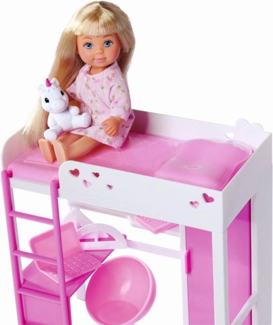 Divstāvu gulta ar kāpnēm un integrētu rakstāmgaldu veido mājīgu istabiņu, kur Evi var gan mācīties, gan atpūsties.