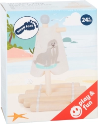 Atklājiet viļņu jautrību ar small foot koka plostu, kas radīts mazajiem jūrniekiem. Pateicoties dabīgiem materiāliem, stingrai izgatavošanai un tekstila burai ar jautru valīša motīvu, bērni izbaudīs stundām ilgas rotaļas katrā peldē. Rotaļlieta piemērota vannai, bļodai, baseinam un mierīgiem dabīgiem ūdeņiem – vienkārši novietojiet uz ūdens un ļaujiet tai peldēt.