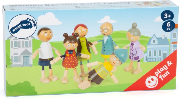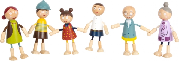 Ar šīm koka figūriņām no Small Foot jūs viegli varēsiet atdzīvināt savu leļļu māju. Figūriņas ir izgatavotas no kvalitatīva koka un tām ir lokanas daļas, kas ļauj tās novietot dažādās pozās. Komplektā ir mamma, tētis, vecmāmiņa, vectētiņš, brālis un māsa, visi lieliski pielāgoti bērnu rokām.