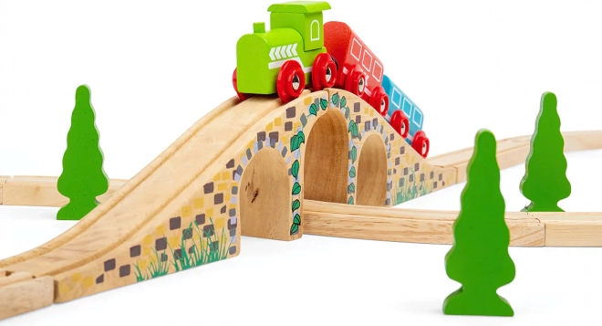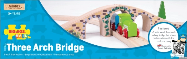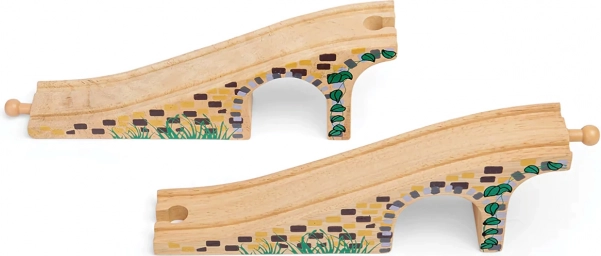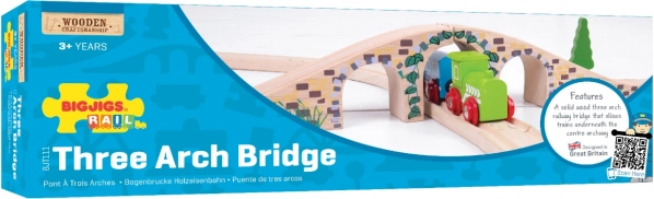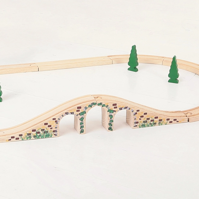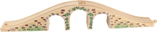 Šis stilīgais trīsarku tilts ir lielisks papildinājums jebkurai koka vilcieniņu trasei. Pateicoties reālistiskām akmens ķieģeļu detaļām un gludai apdarei, tas piešķir jūsu trasei augstuma dinamiku un vizuālu pievilcību. Ļauj vilcieniem braukt gan pa virsu, gan zem tilta, radot aizraujošus spēles scenārijus.