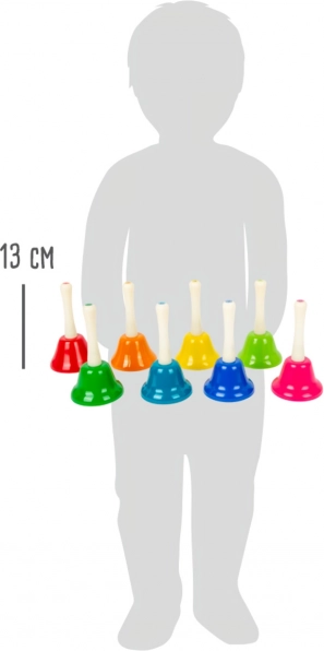 Katra zvaniņa krāsa un skanējums ir atšķirīgs, un toņi ir precīzi noregulēti uz vienu no astoņām notīm.