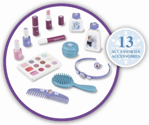 Šis skaistuma komplekts no Frozen kolekcijas ir lieliski piemērots bērniem, kuri labprāt izmēģina jaunas lietas un veido dažādus stilīgus izskatus. Pateicoties kompaktajiem izmēriem un ērtajam rokturim, šo ceļamo komplektu var ņemt līdzi jebkur. Komplektā ietilpst: