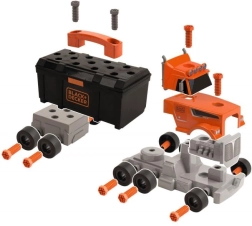 Liels 3in1 Black+Decker vilcējs no franču ražotāja Smoby sniedz bērniem daudz jautrības un attīstības iespēju. Tas apvieno kravas auto funkcijas ar noņemamu instrumentu koferi un saliekamu celtni.
