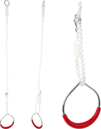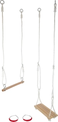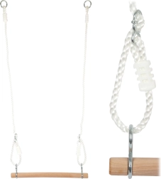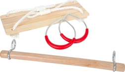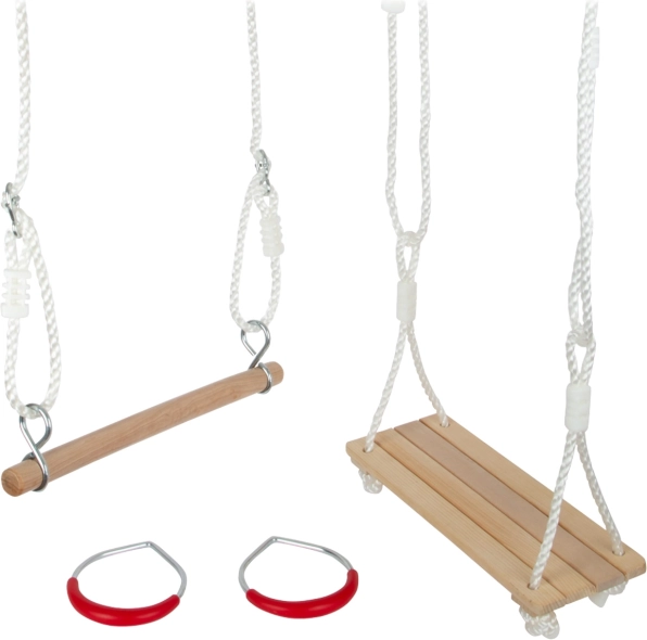 Šis daudzfunkcionālais komplekts mazajiem akrobātiem nes aktīvas kustības un prieku gan dārzā, gan bērnistabā. Klasiskās koka šūpoles, karājošā hrazda un vingrošanas riņķi ar ērtiem plastmasas satvērieniem veicina koordinācijas, spēka un līdzsvara attīstību.