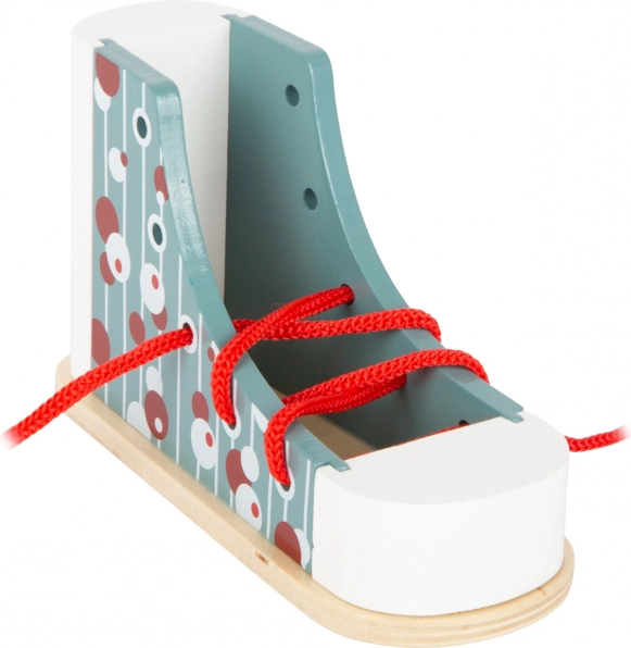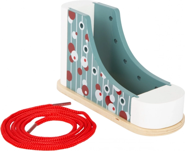 Šī koka rotaļlieta ir izstrādāta, lai bērniem atvieglotu šņoru siešanas apgūšanu, pateicoties realistiskajai formai un rotaļīgam dizainam.