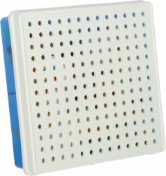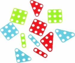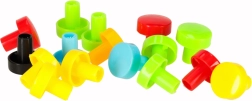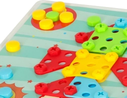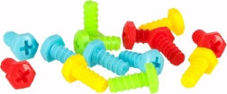 Liels krāsainu skrūvju, plāksnīšu un formas detaļu komplekts rosina radošumu un veicina patstāvīgu mozaīku un modeļu veidošanu.