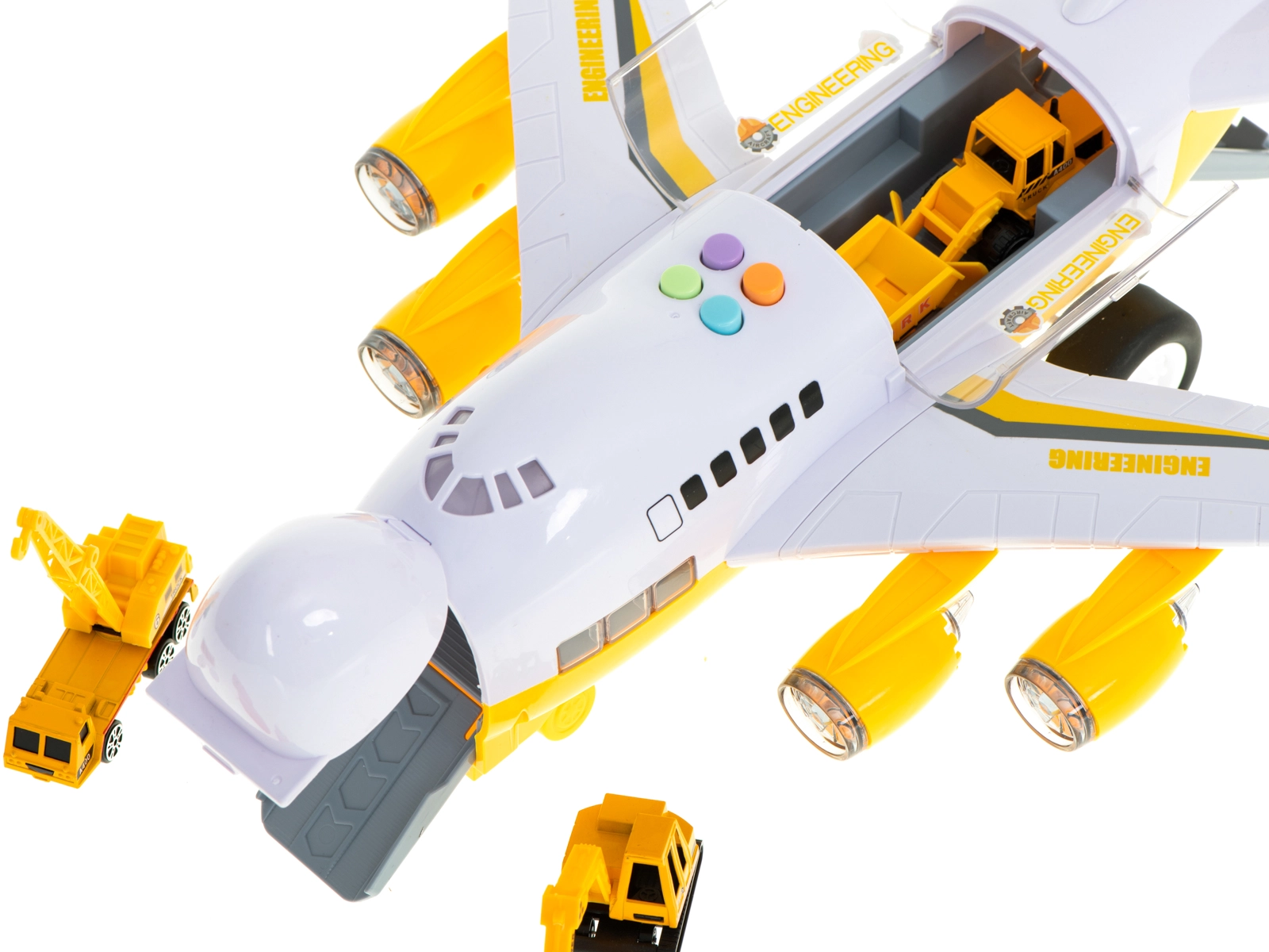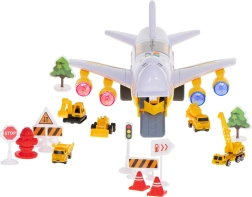 Šis daudzfunkcionālais komplekts apvieno transporta lidmašīnu ar mini būvniecības pasauli. Mašīnītes var iebraukt lidmašīnā pa nolaižamo priekšējo rampu, un, pateicoties atveramai augšējai daļai, bērniem ir viegla piekļuve kravai. Dzinēji iedegas ar LED gaismām, kas pastiprina reālistisku spēles pieredzi.