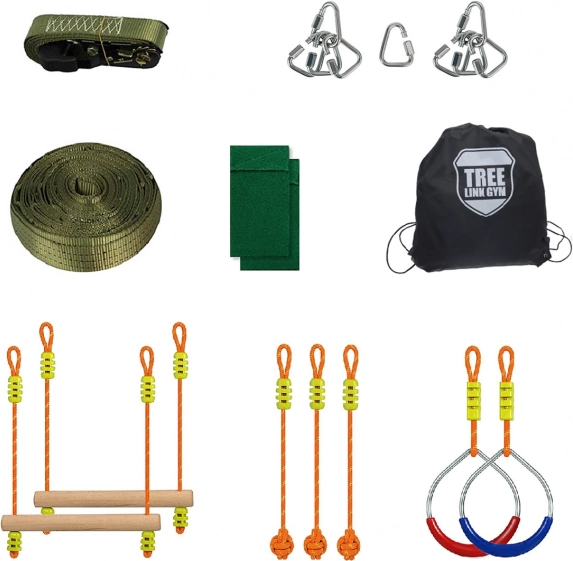 Nindzju šķēršļu trase 2Kids Toys ir veidota uz izturīgas neilona siksnas, kuru ar robustas metāla sprūdrata sprūdes palīdzību var nostiept starp diviem kokiem. Pie siksnas var piekārt dažādus šķēršļu veidus, kas tiek piestiprināti ar karabīnēm. Šī variabilitāte ļauj panākt dažādus grūtības līmeņus un nodrošina aizraujošu treniņu ikvienam. Turklāt trasi var izmantot arī kā slackline.