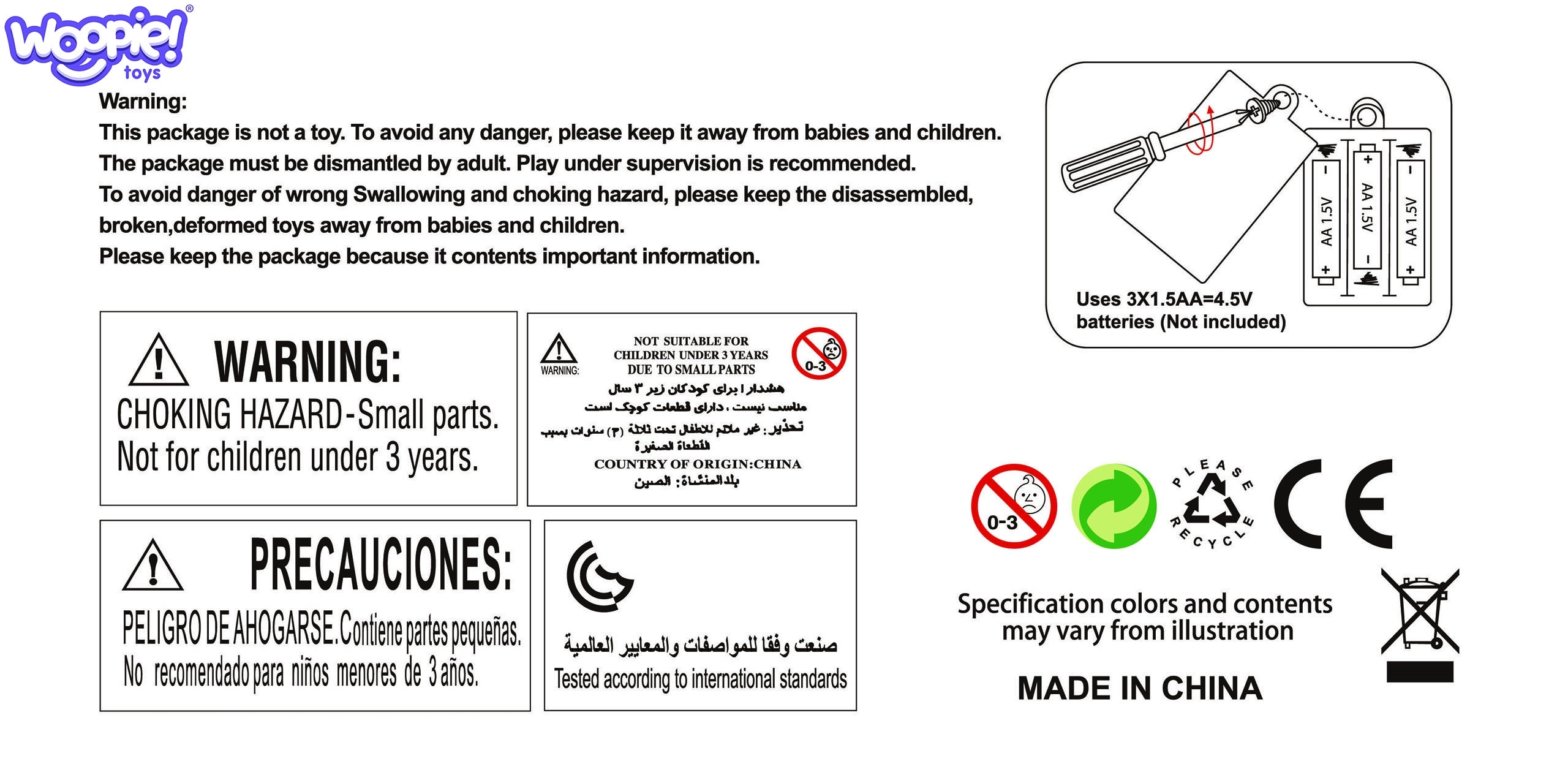 Produktus nedrīkst lietot uzturā. Nepieciešamas trīs AA baterijas (nav iekļautas komplektā).