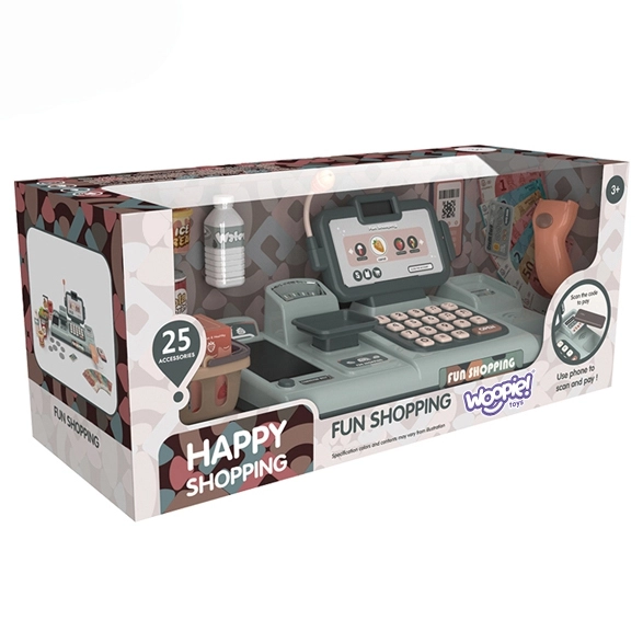 Bērnu kase Woopie ir neaizstājama ikvienam mazajam tirgotājam. Tā ir aprīkota ar kalkulatoru ar LCD displeju, kurā redzami cipari, kā arī ar skaņas skeneri, kas nodrošina reālistisku iepirkšanās pieredzi.