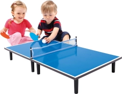 Kompakts galda teniss zilā krāsā izklaidei mājās un ceļā. Izturīga un stabila konstrukcija, noturīgs izpildījums un viegla salikšana līdz kofera formai. Pateicoties vidējam izmēram un nelielam svaram, to ērti novietosiet uz parasta galda un varēsiet sākt spēli uzreiz.