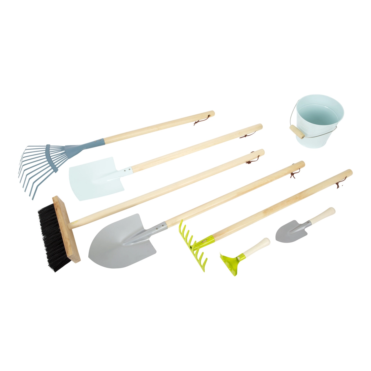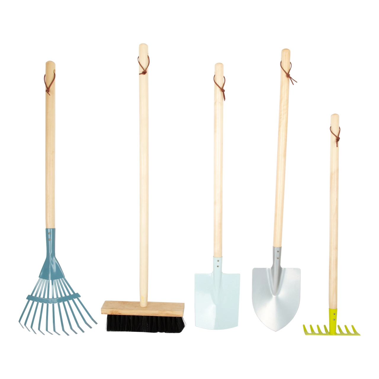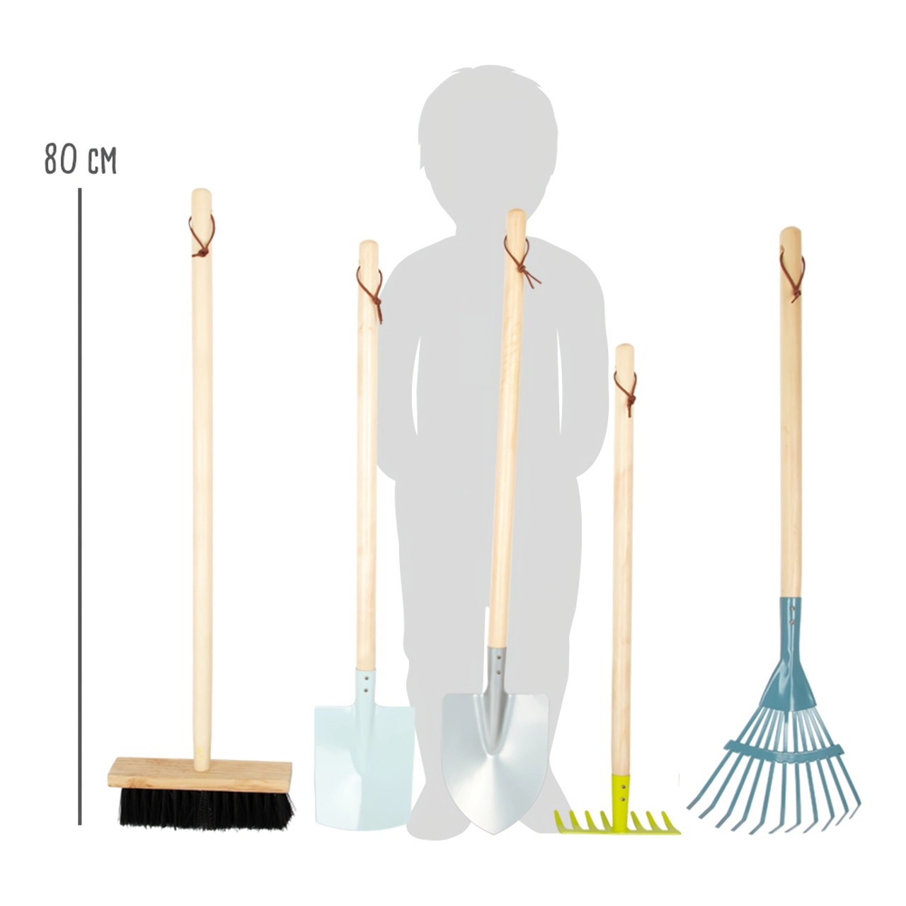 Šis lielais Small Foot bērnu dārza darbarīku komplekts veicina kustības brīvā dabā un attīsta veiklību, kā arī saikni ar dabu. Iepakojumā atradīsiet visu nepieciešamo mazajiem palīgiem: lāpstu, lielo lāpstu, grābekli, slotu un mazus dārzkopības instrumentus. Katram gabalam ir koka kāts un metāla darba daļa ilgai kalpošanai.