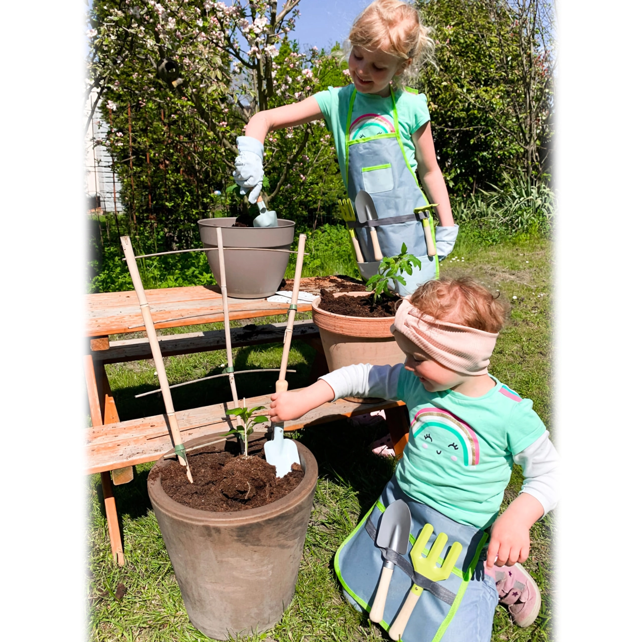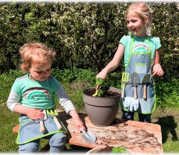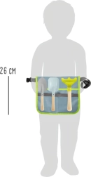 Šis gudrais komplekts apvieno ērtu jostu ar praktiskiem instrumentiem, lai bērni varētu viegli stādīt, irdināt un pārnēsāt augsni. Metāla instrumenti ar gludām malām un koka rokturi ir pielāgoti mazām rokām un iztur arī bērnu aizrautīgo darba tempu. Josta ar regulējamu siksnu tur instrumentus pa rokai un nodrošina brīvas, drošas kustības.