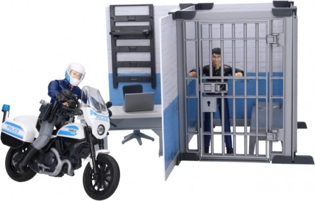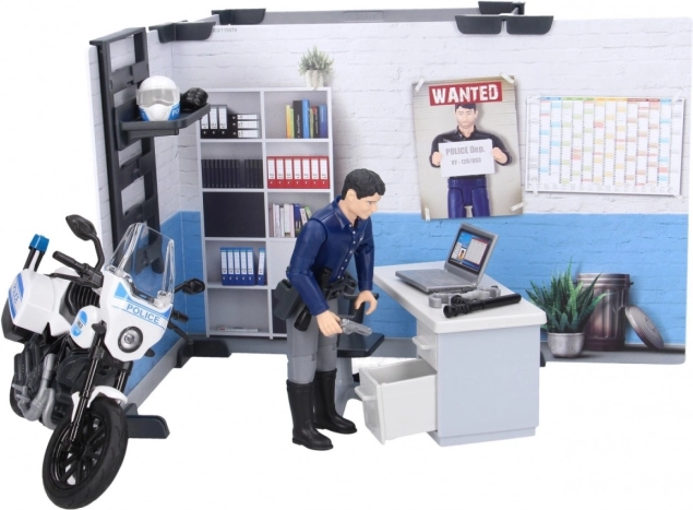 Šī BWORLD Bruder policijas stacija piedāvā bērniem lielisku iespēju veidot savus stāstus un situācijas. Policijas stacija kalpo kā koordinācijas centrs ar biroja daļu, kur policists var uzraudzīt un vadīt misijas. Stacijā ietilpst:
