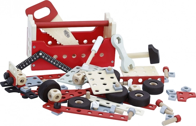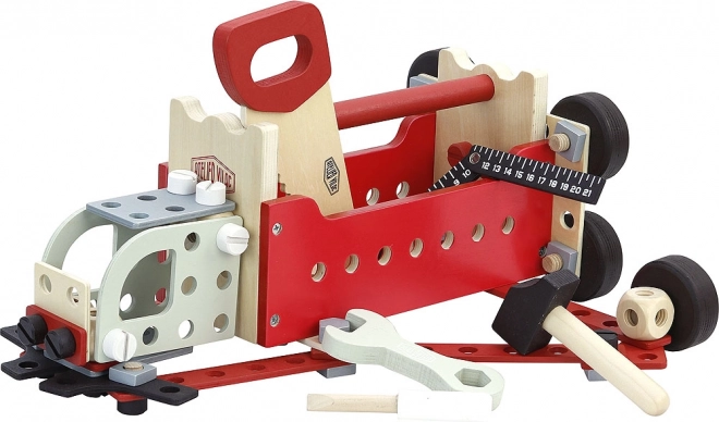 Meklējat rotaļlietu, kas attīstīs jūsu bērnu motoriskās prasmes un radošo domāšanu? Divpusējs rīku koferis Vilac ir īstā izvēle! Šis komplekts satur līdz pat 96 detaļām, kas ļauj veidot modulāras konstrukcijas, piemēram, kravas automašīnu, celtni vai pat robotu. Vilac Ateljē dizains garantē kvalitatīvu izpildījumu un pievilcīgu retro izskatu. Bērni varēs iejusties mazā meistara lomā un iedvesmot savu rotaļlietu pasauli.