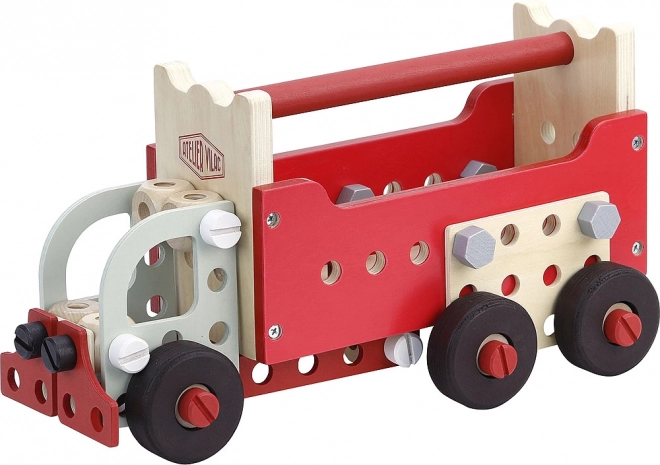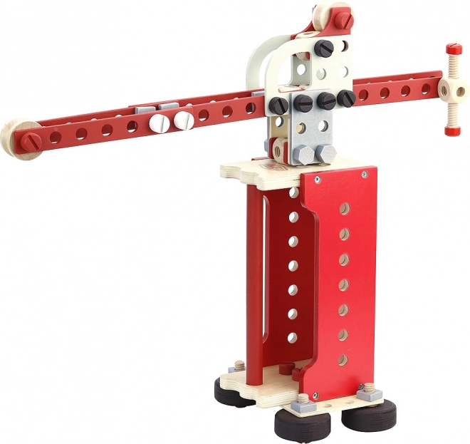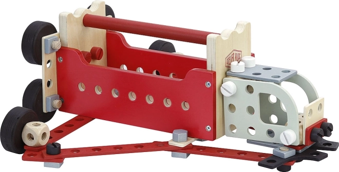 Komplekts ir izgatavots galvenokārt no kvalitatīva koka un satur izturīgas sastāvdaļas, kas nodrošina rotaļlietu ilgmūžību.