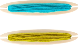Četras koka spolītes ar krāsainu dziju un pamatdiegi ļauj sākt radīt bez papildu pirkumiem – atliek tikai atvērt un aust.
