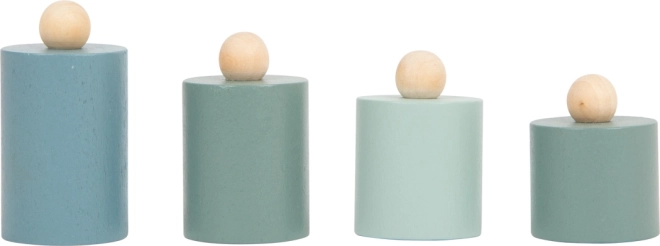 Bērni viegli sapratīs līdzsvarošanas principu, pateicoties divām bļodiņām un četriem koka atsvariem ar atšķirīgu masu.