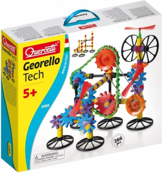Georello Tech konstruktors pārnes rotācijas kustību starp attāliem pārnesumiem un uzskatāmi parāda pamatmehāniskās funkcijas, līdzīgas tām, kas atrodamas reālās iekārtās. Pateicoties ķēdei un elastīgajai siksnai, bērni var savienot zobratus lielākos attālumos un veidot vēl sarežģītākas konstrukcijas.