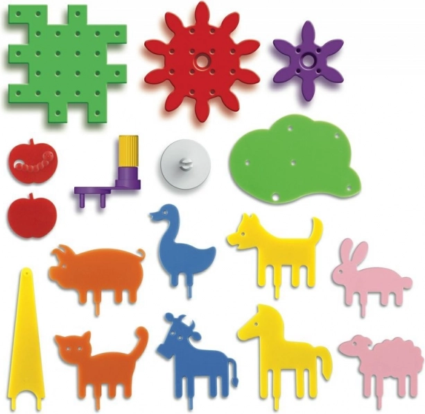 Quercetti Georello Ferma ir ideāla rotaļlieta ikvienam bērnam, kurš mīl veidot un būvēt. Šis pārnesumu konstruktors ietver perforētas plāksnes, asis, zobratus un dzīvnieku figūriņas, kuras var viegli salikt iespaidīgā lauku sētas ainā. Ar kloķa palīdzību var iedarbināt mehānismu un vērot, kā viss griežas kā karuselī.