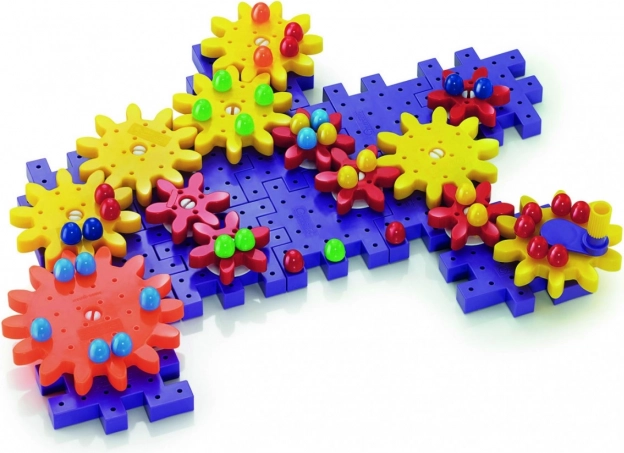 Krāsainu zobratu un figūriņu komplekts ļauj bērniem veidot dažādas struktūras, vienlaikus rotaļīgi apgūstot mehānikas pamatus.