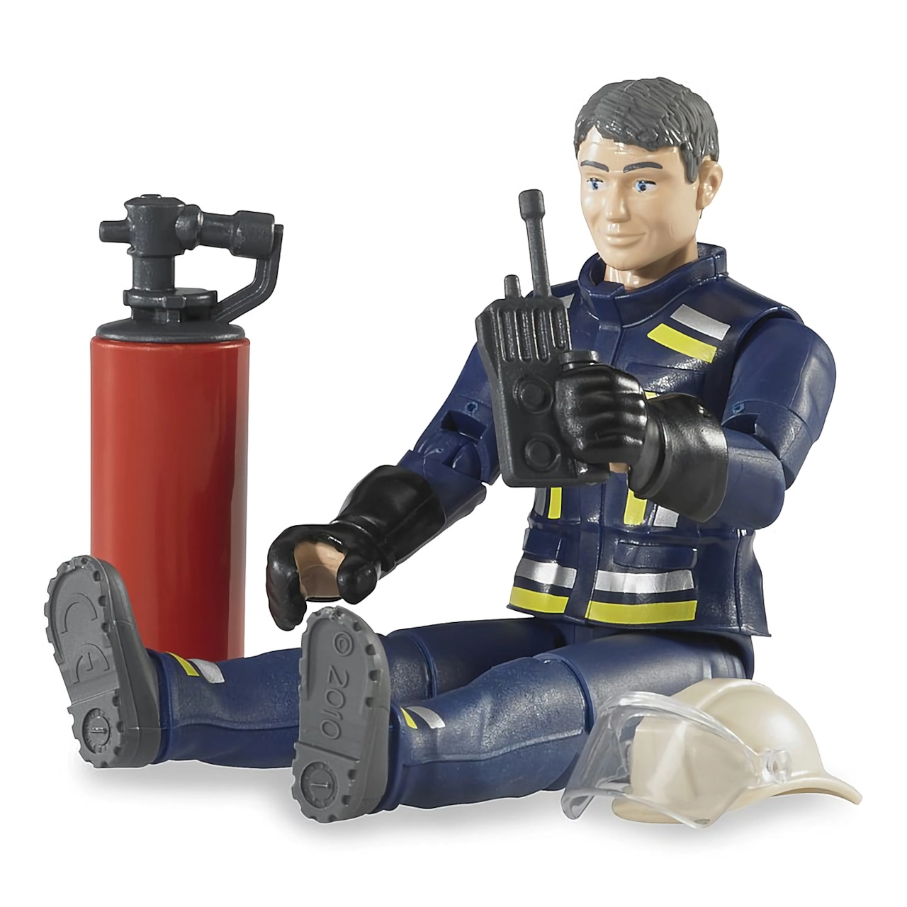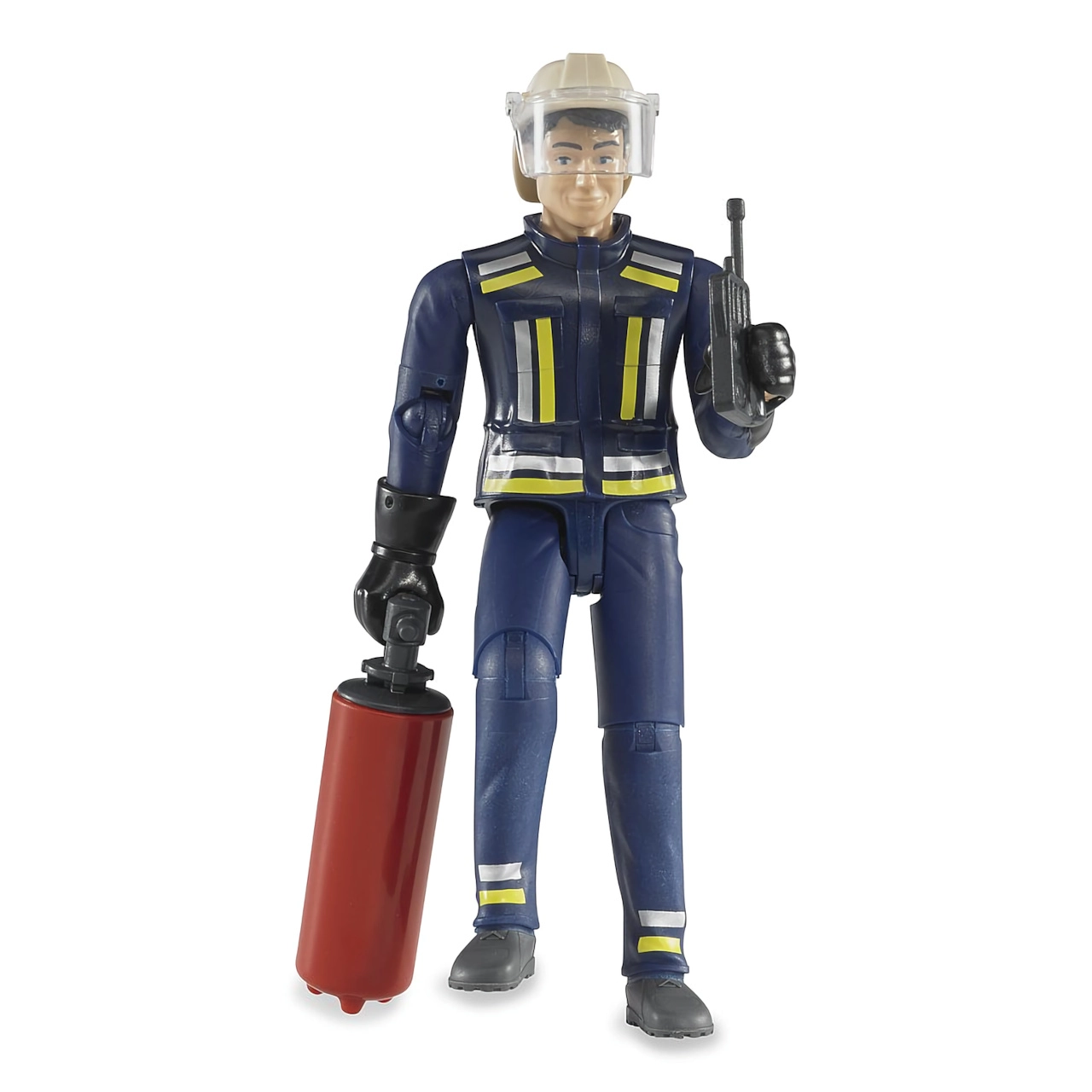BRUDER Bworld ugunsdzēsēja figūriņa ir veidota reālistiskai spēlei un vieglai vadībai mazām rokām. Pateicoties kustīgajām locītavām un satveršanas rokām, var veidot varonīgas ugunsdzēsības ainas, attīstot iztēli un sīko motoriku.