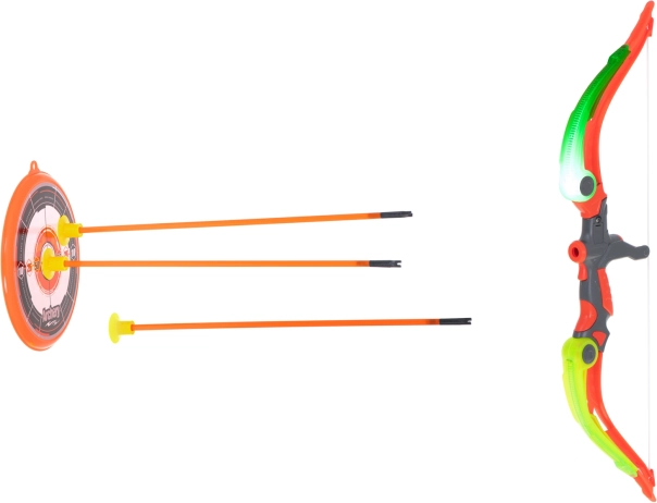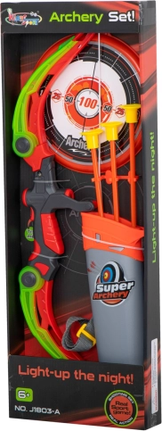Izklaidējošs un drošs komplekts mazajiem loka šāvējiem: bērnu loks ar piesūcekņu bultām, mērķi un ādas maksti/kolčanu. Pateicoties gumijas stieplei un mīkstajām piesūcekņgalvām, spēle ir droša gan mājās, gan ārā, tā attīsta koordināciju, precizitāti un radošumu. Loks ir aprīkots ar gaismas efektiem ar baterijām vēl lielākai izklaidei.