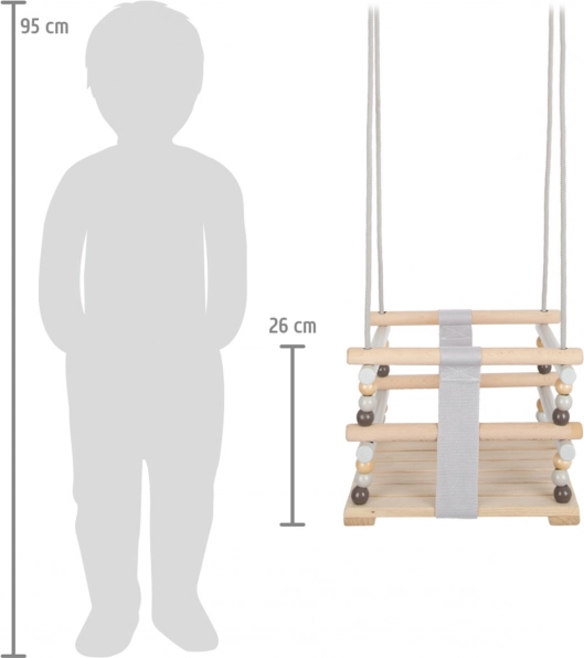 Ar mūsu koka šūpolēm jūs pārvērtīsiet jebkuru vietu par prieka un izklaides pilnu telpu. Vienkārša augstuma regulēšana ar caurvēršanas karabīnēm ļauj pielāgoties jūsu bērna vajadzībām. Šis elegantais skandināvu dizains lieliski der gan interjerā, gan ārvidē.
