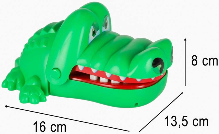 Prasmju spēle ar krokodilu ir vienkārša, aizraujoša un rada azartu. Katru reizi atverot žokli, nejauši tiek noteikts viens sāpīgais zobs, tāpēc nekad nezini, kad krokodils saklapinās. Pateicoties drošajiem, noapaļotajiem zobiem, spēle ir piemērota arī mazākiem bērniem un lieliski attīsta reakciju un pacietību.