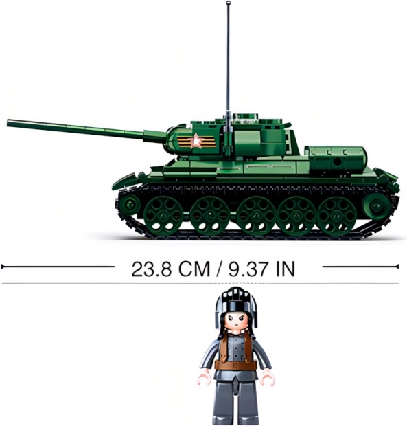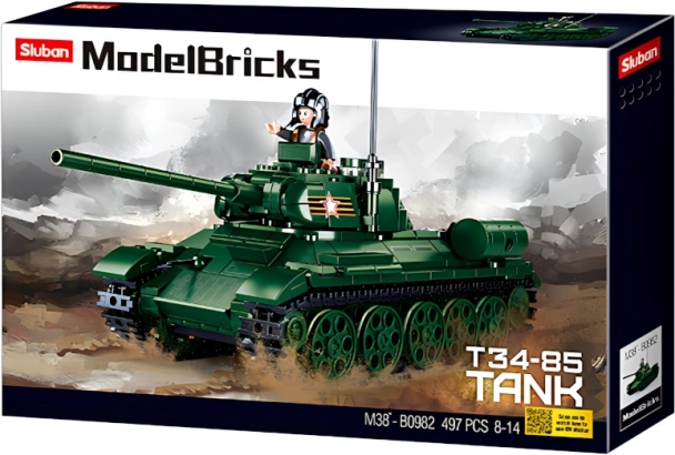 Uzceliet leģendāro padomju tanku T‑34/85 ar Sluban konstruktora palīdzību. Šajā komplektā ir 497 detaļas, 1 figūriņa un vidējs sarežģītības līmenis lieliskam būvēšanas piedzīvojumam. Detaļas no izturīga ABS plastmasas ir saderīgas ar LEGO, COBI un MEGA BLOKS un papildinātas ar inovatīvām figūriņām ar kustīgām daļām. Ideāli bērniem no 8 gadiem un militārās tehnikas entuziastiem.