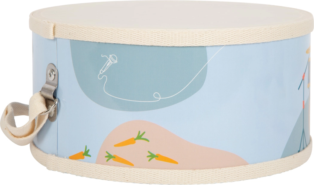 Pateicoties regulējamai un noņemamai siksnai, bērni var ērti pakārt bungas un spēlēt jebkur. Vālītes ar īpašiem slāpējošiem uzgaļiem nodrošina patīkamāku, klusāku skanējumu – ideāli bērnistabai un ceļā.