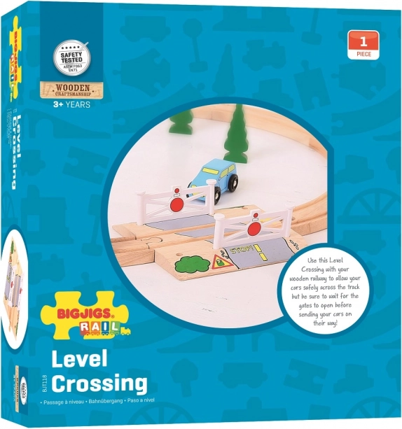 Izgatavots no kvalitatīviem un atbildīgi iegūtiem dabīgiem materiāliem, šis komplekts veicina bērnu iztēli, veiklību un koordināciju. Dzelzceļa pārbrauktuvei ir nolokāmas barjeras, kas lieliski der Bigjigs Rail vilciena trasēm, un to var kombinēt ar visām pārējām koka vilciena trasēm tirgū.